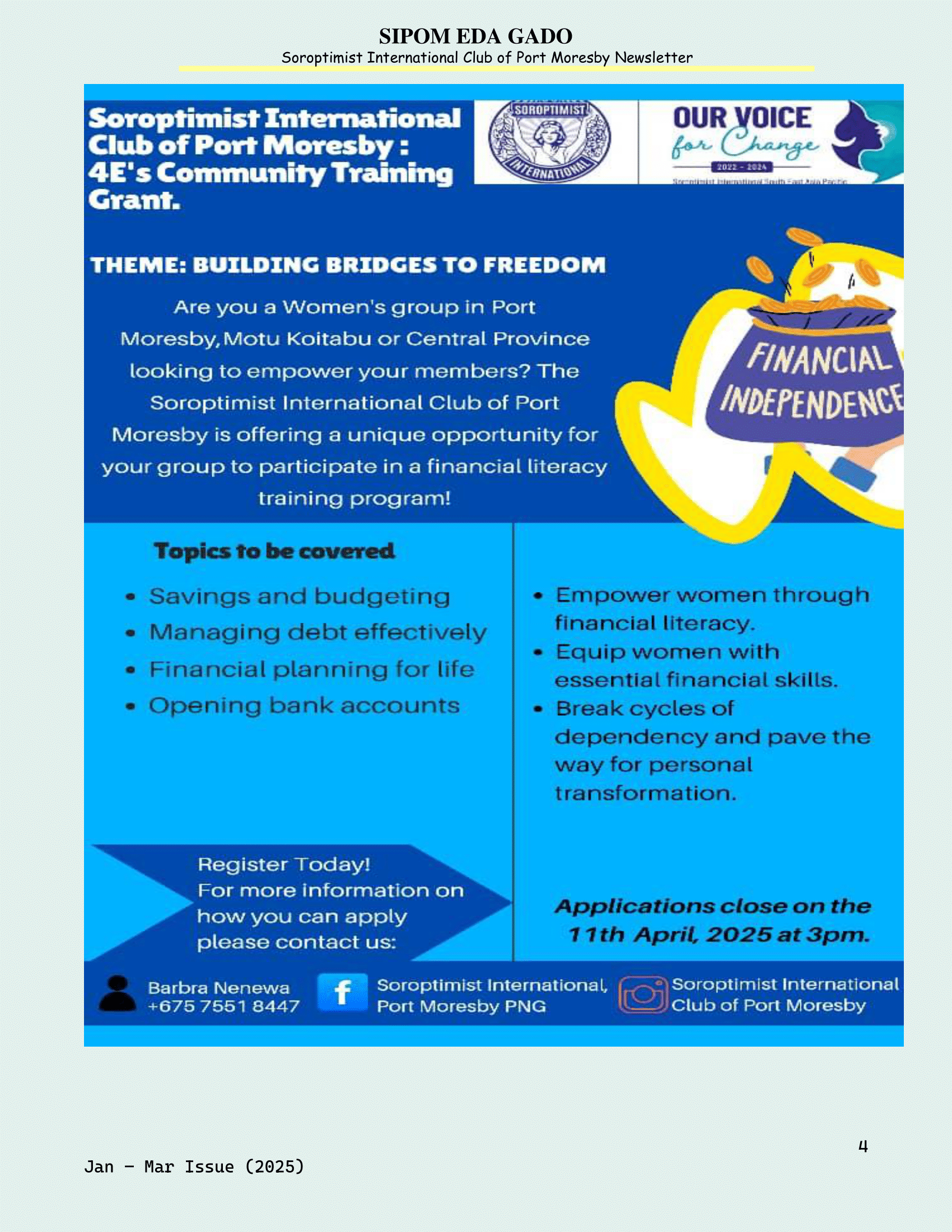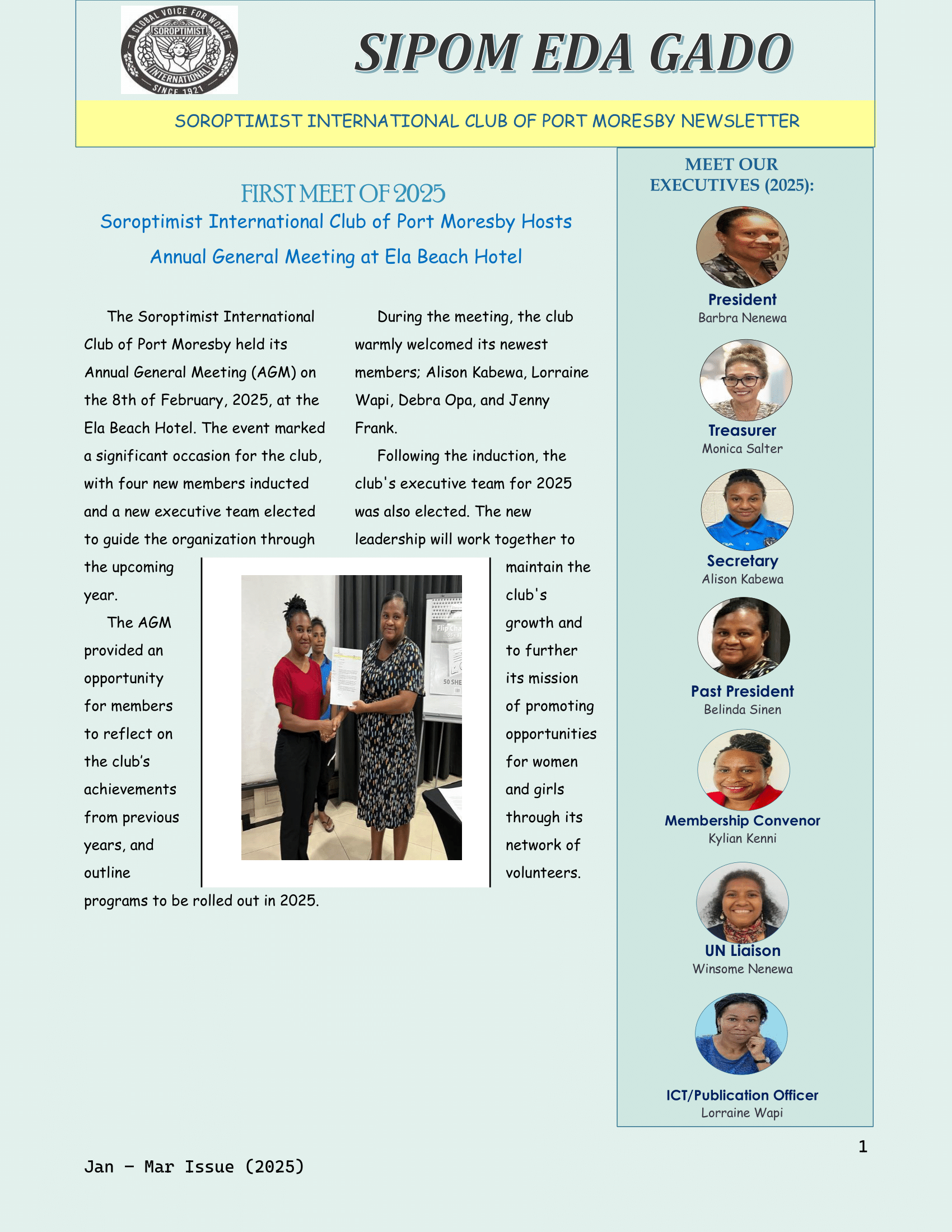 The SI Port Moresby January–March Newsletter highlights the inspiring work of the club over the past months.